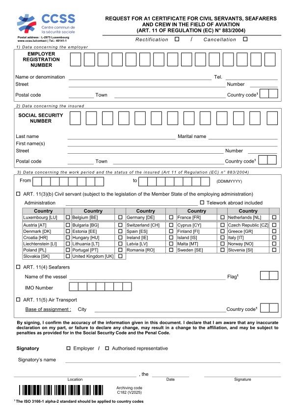 Request for A1 certificate for civil servants, seafarers and crew in the field of aviation (art. 11) (in English)