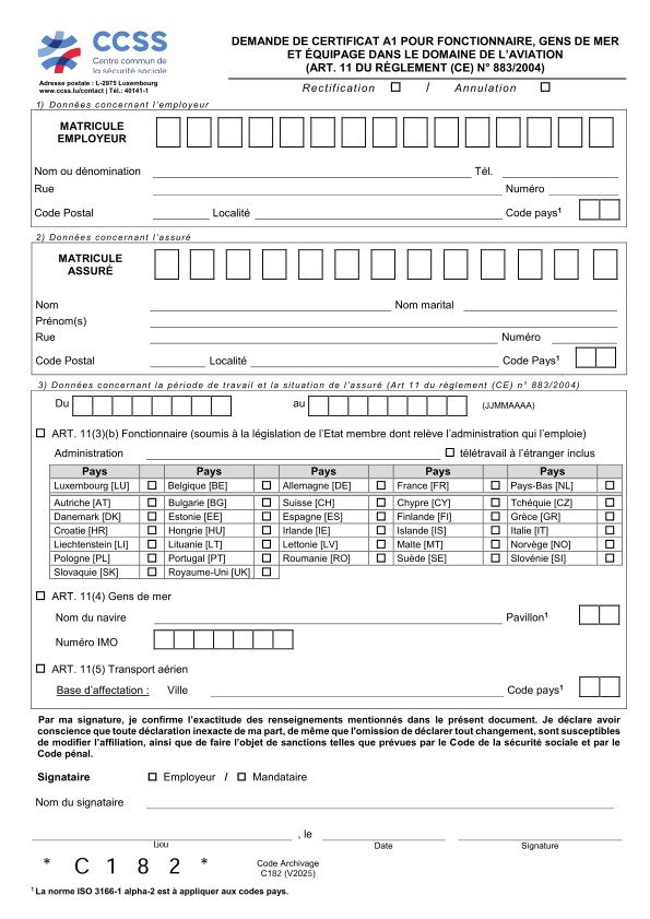 Demande de certificat A1 pour fonctionnaire, gens de mer et équipage dans le domaine de l’aviation (art. 11) (en français)
