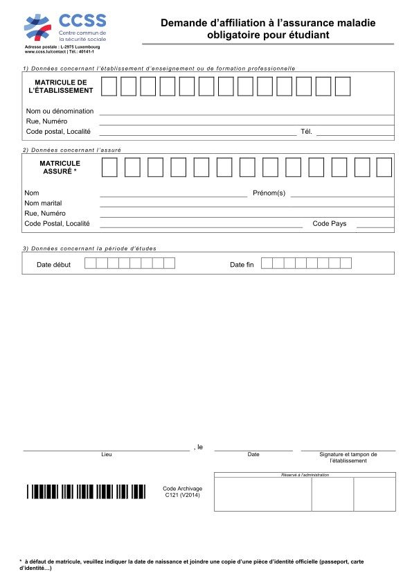 Antrag für die obligatorische Krankenversicherung für Studenten (nur auf Französisch verfügbar)
