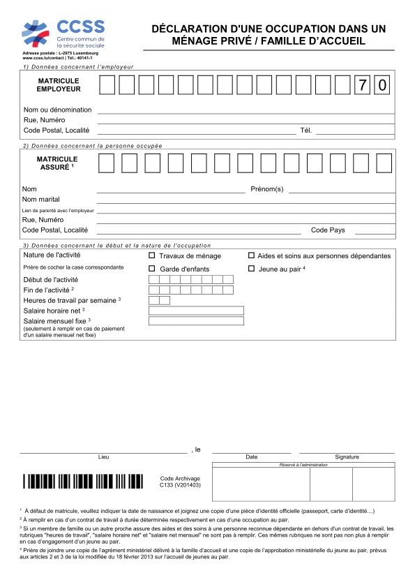 Anmeldeformular für Arbeitnehmer in einem Privathaushalt / in einer Gastfamilie