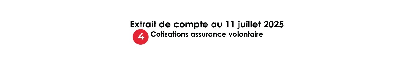 Alle von der CCSS erfassten und berücksichtigten Zahlungen, die vor der Erstellung des neuen Kontoauszugs getätigt wurden. Die vier jüngsten Zahlungen werden in absteigender Reihenfolge nach Wertstellungsdatum angezeigt. Falls mehr als vier Zahlungen erfolgt sind, werden diese in der letzten Zeile „Cumul paiements antérieurs (Kumulierte frühere Zahlungen)“ zusammengefasst. Die Summe der erfassten Zahlungen wird vom Gesamtbetrag abgezogen und dient der Berechnung des neuen Gesamtsaldos.