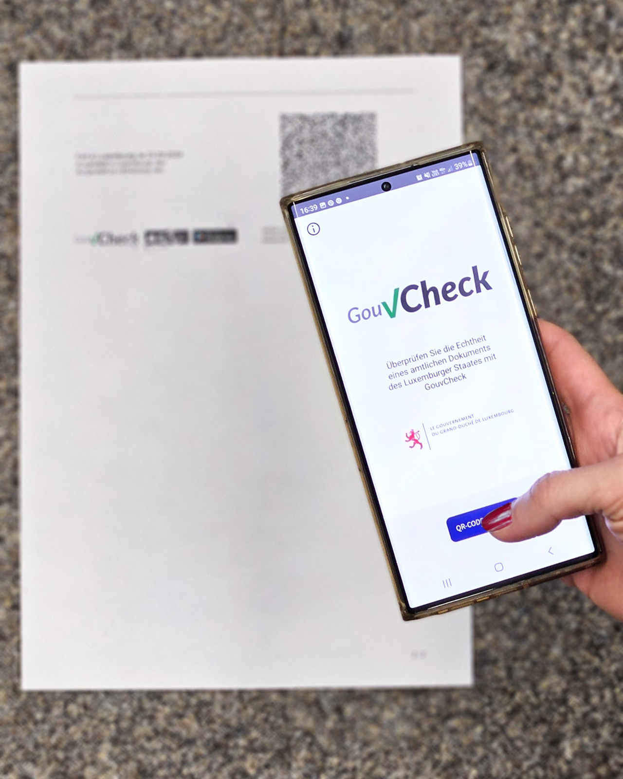 From Wednesday 9 October 2024, all affiliation certificates and wage statements issued by the Social Security Centre (CCSS) will carry a QR code that can be used to check the authenticity of the certificate via the GouvCheck app.