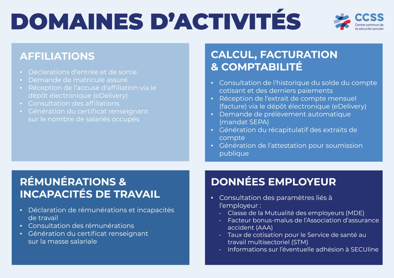 The CCSS is launching its online services for employers (excluding temporary employment agencies, agricultural operators, and self-employed persons, who will have access to these services at a later stage) and their representatives in the business eSpace on MyGuichet.lu.