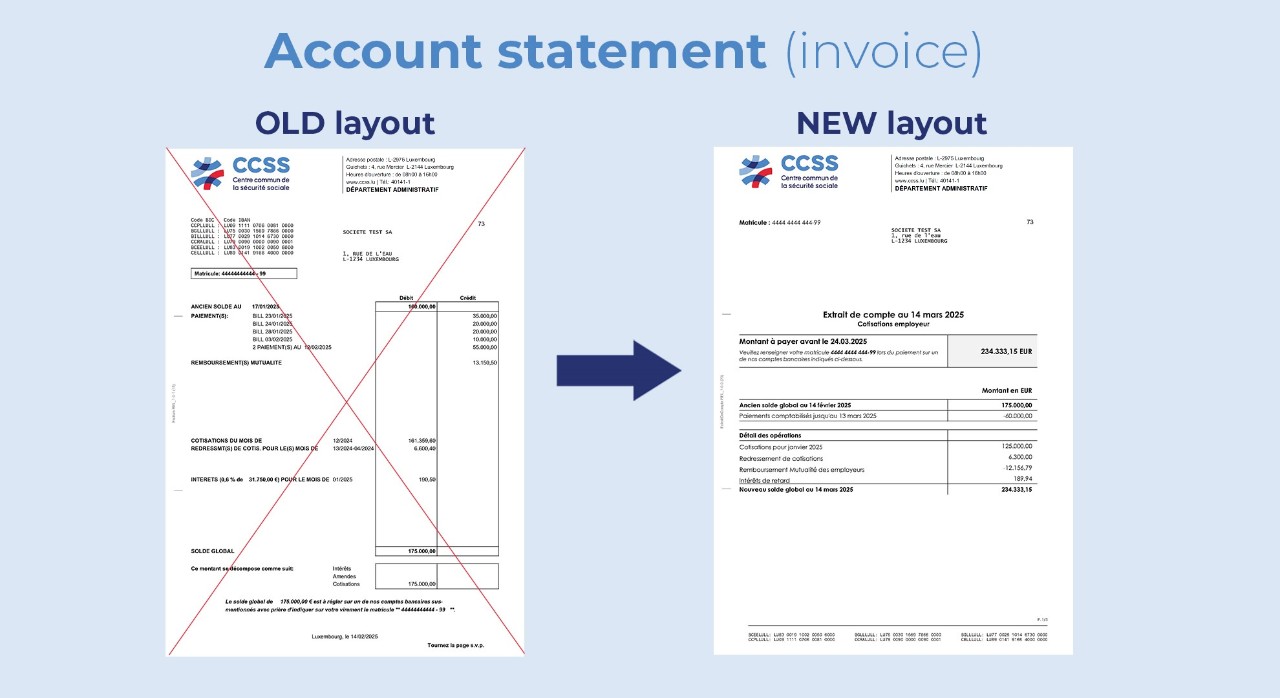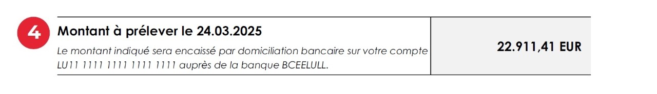 The indicated amount may be reimbursed to the employer upon submission of a "Refund form for natural / legal persons", accompanied by a bank account identification document (relevé d'identité bancaire (RIB)), which can be downloaded from our website under "Forms". If no reimbursement is requested, the amount will be used to cover the balance of the next account statement.