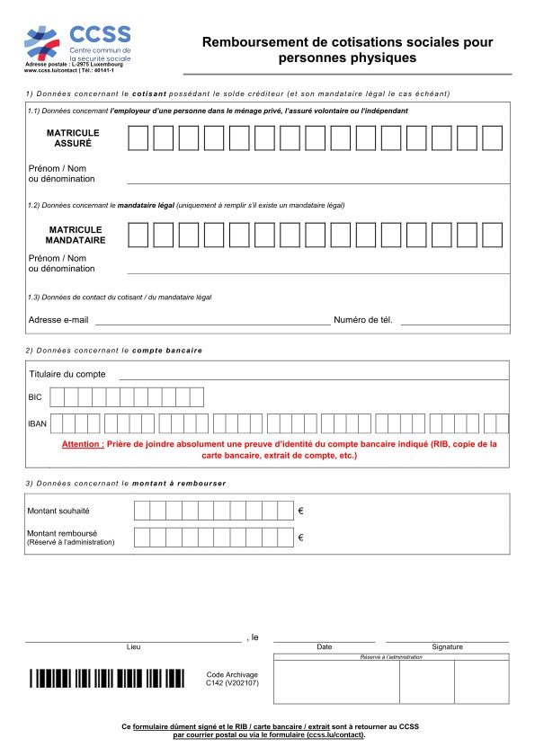Rückerstattungsformular für natürliche Personen
