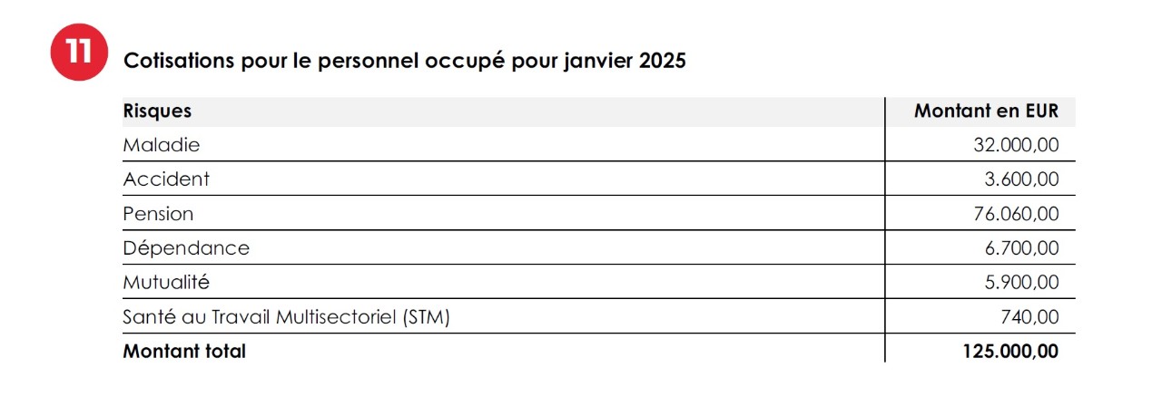 Détail des cotisations dues pour le mois en question pour le personnel occupé.