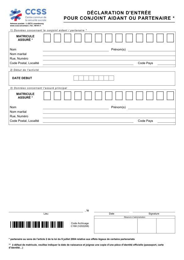 Déclaration d'entrée pour conjoint aidant ou partenaire